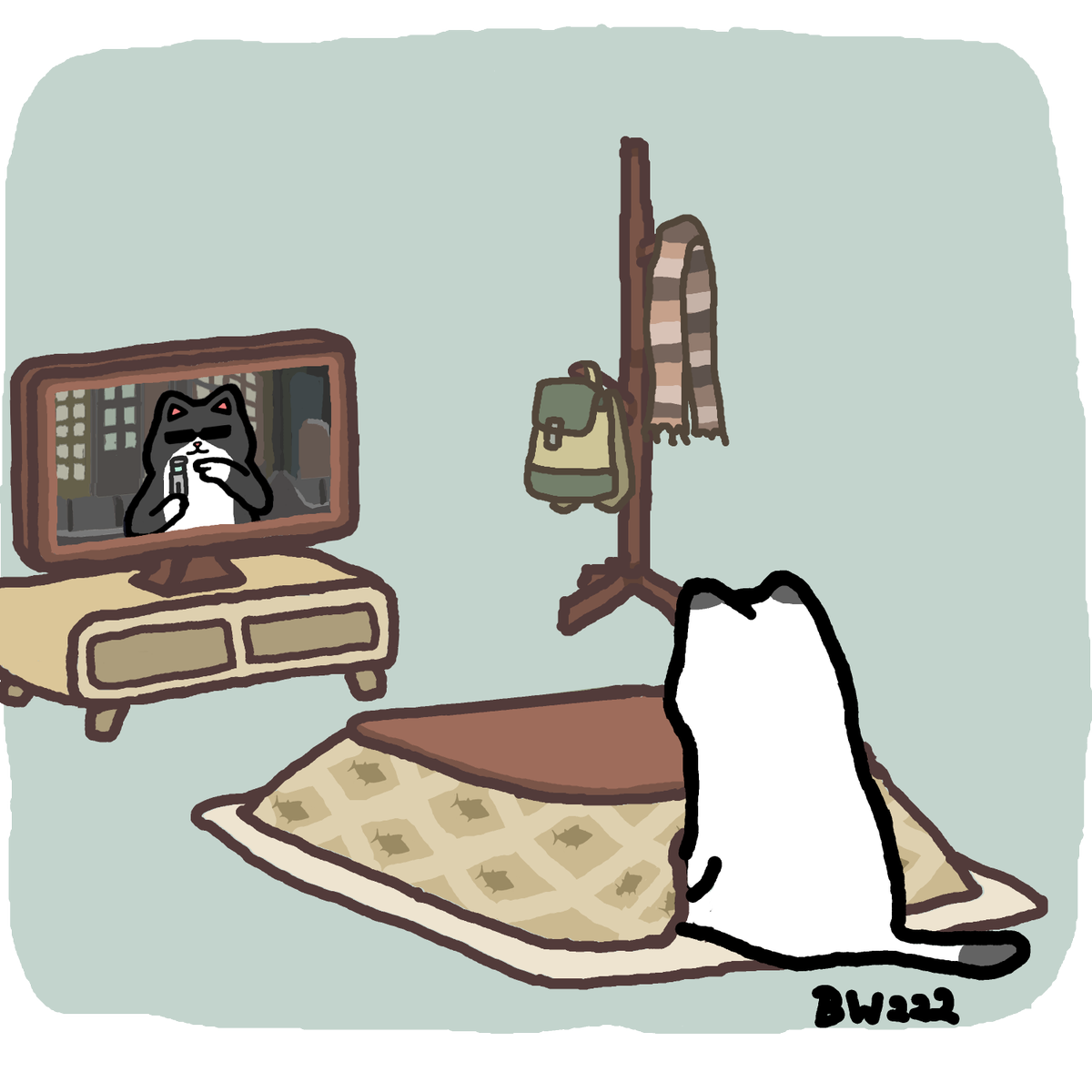 くろもり こたつで映画を観ているネコさんを描きました こたつ テレビ のんびり 映画 みんなちゅうもく Mib 冬の創作クラスタフォロー祭り イラスト ゆるいイラスト イラスト好きさんと繋がりたい 創作 猫 イラスト練習中 T Co